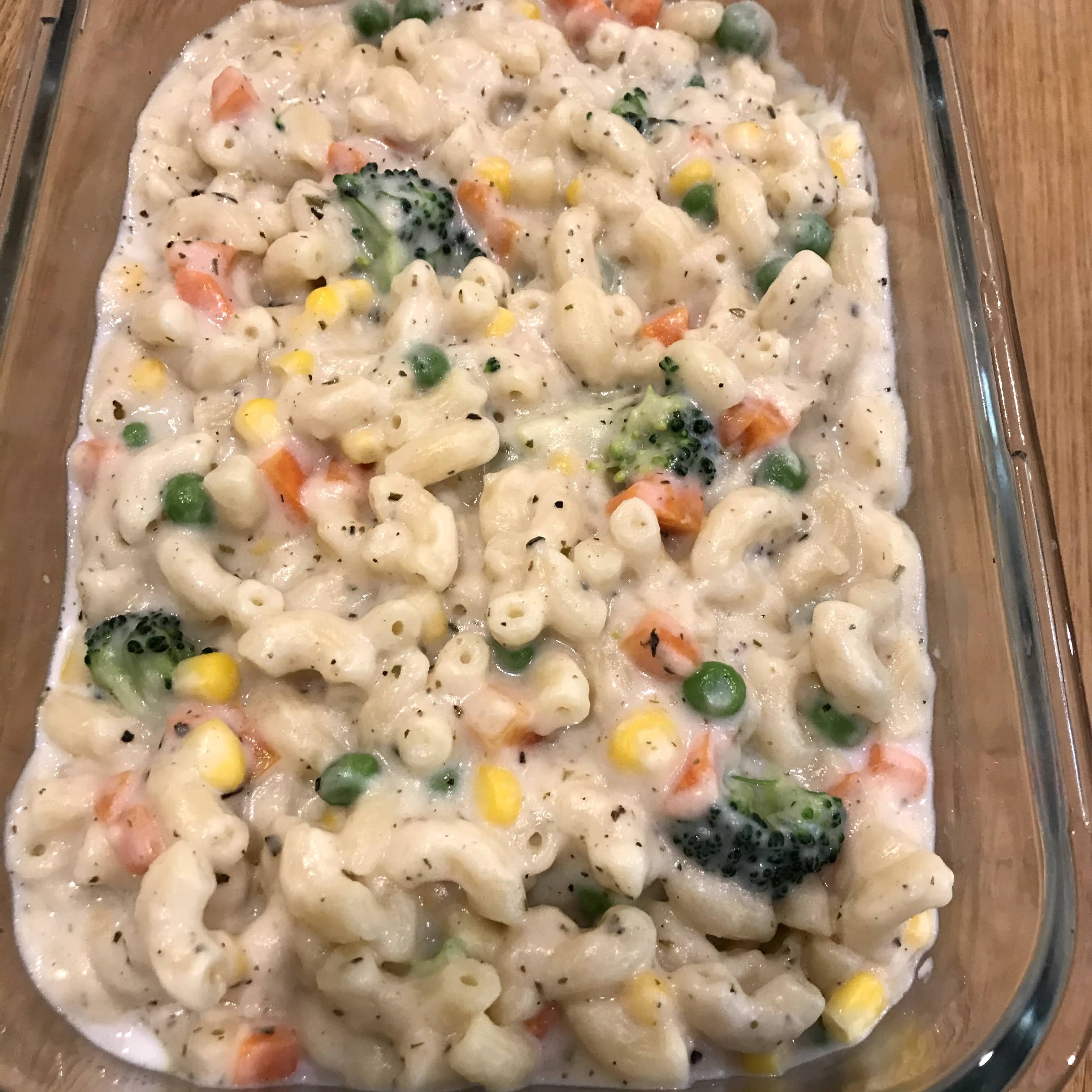 - Now add drained pasta and vegetables to the sauce and mix well. If you are making this dish for later in the day, make the sauce more runny as pasta will absorb the liquid.