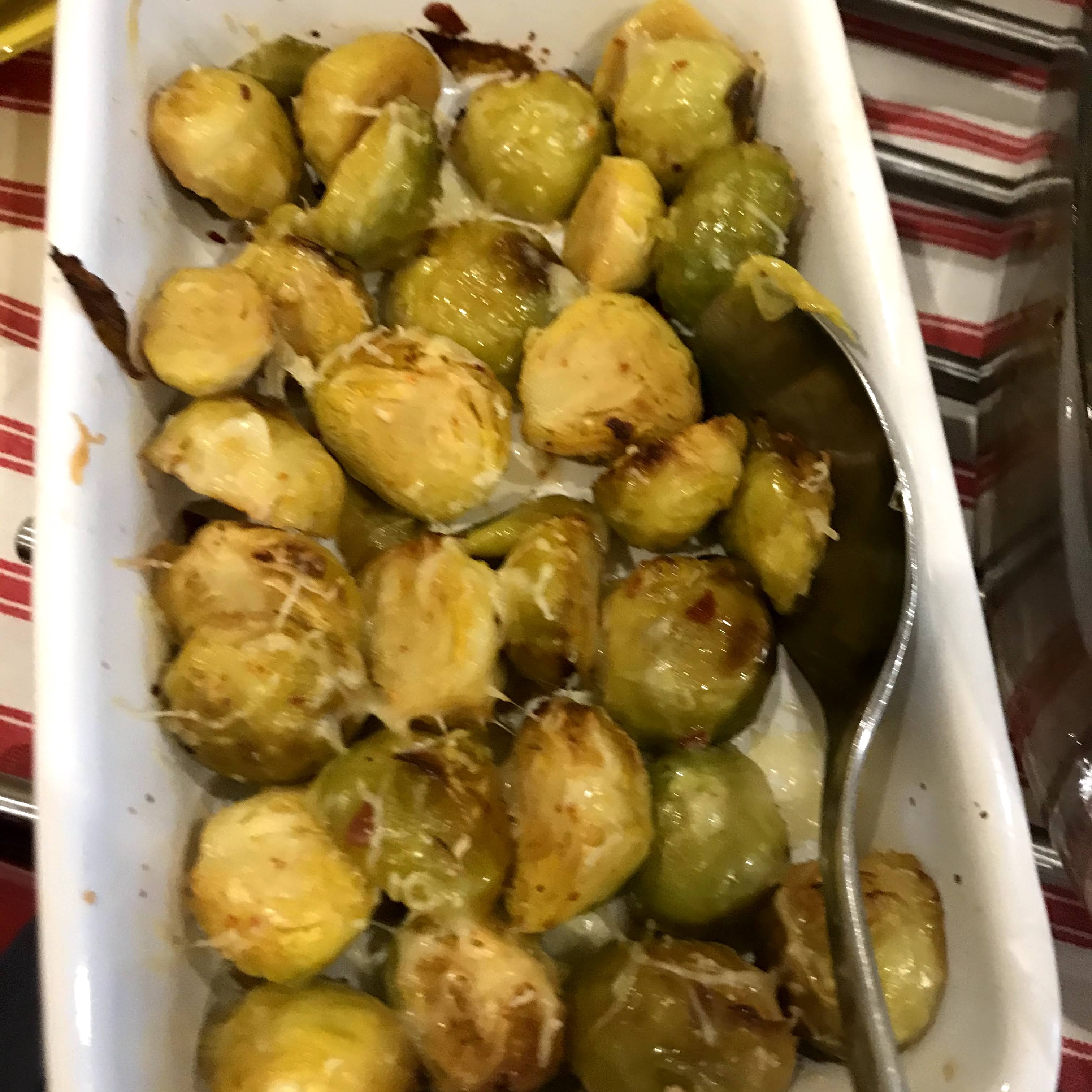 - Roast in the oven for 10 minutes – the sprouts should start to caramelise in places; when that happens, scatter over the Parmesan and roast for a further 15 minutes, until the cheese is crisp and golden brown, and the sprouts tender.