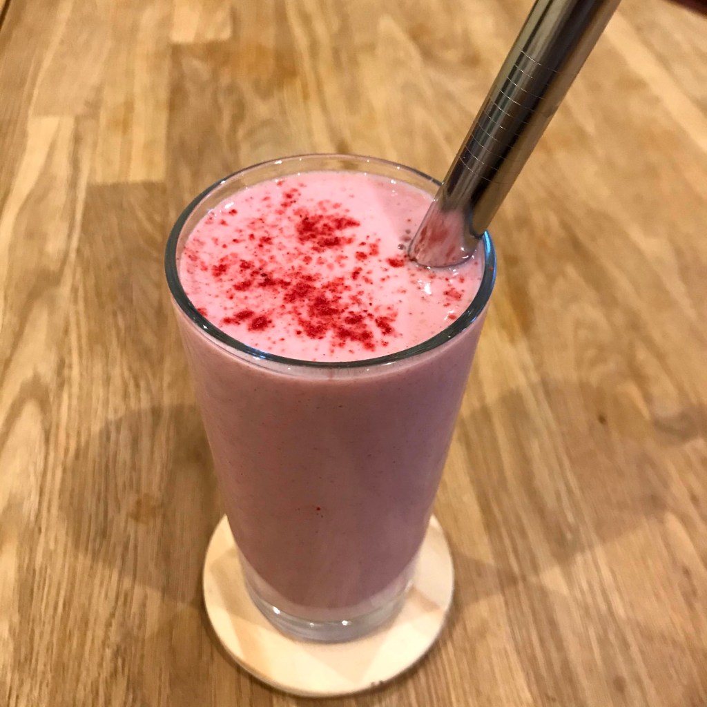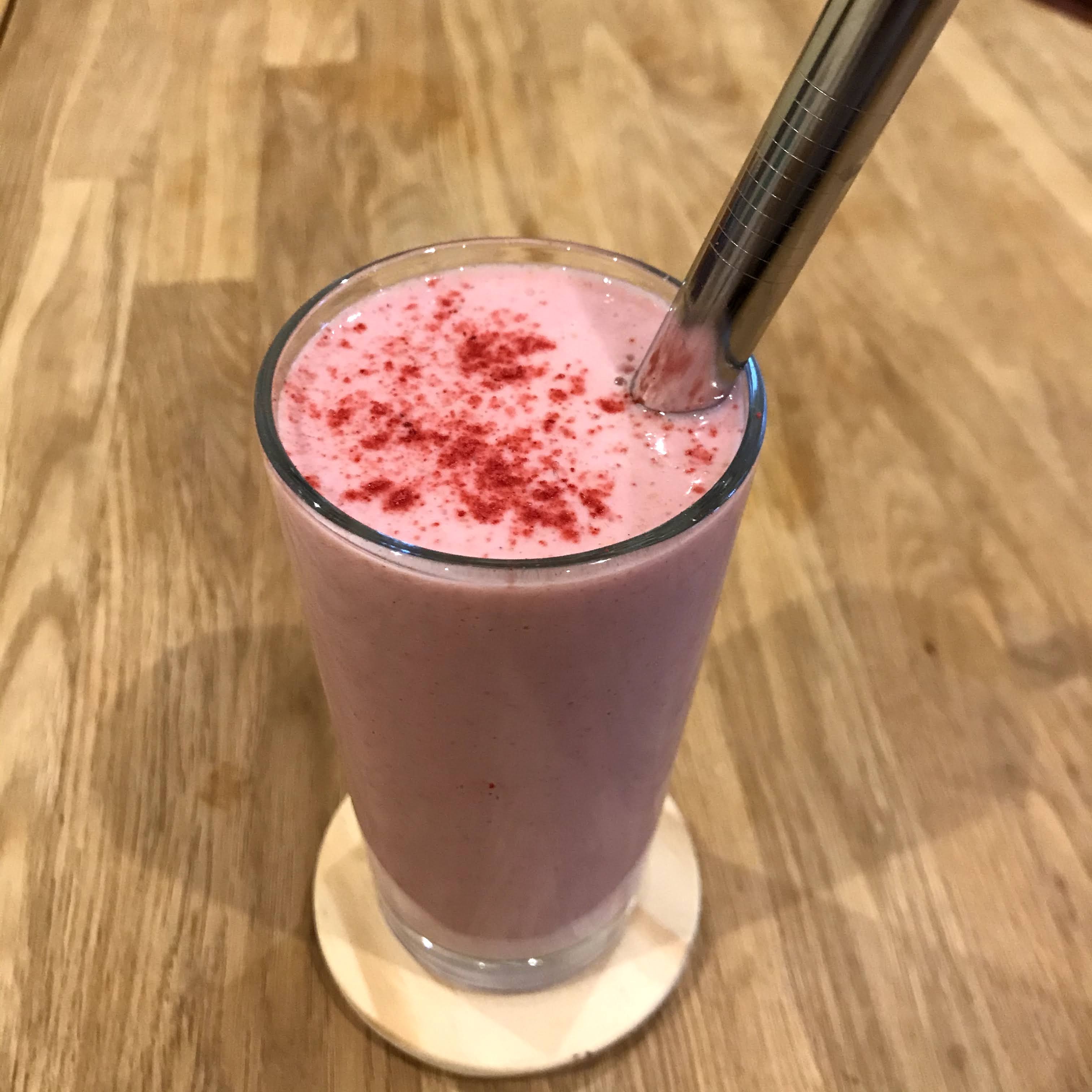 - Pour in a large glass, if you have raspberry powder sprinkle it for decoration and enjoy!